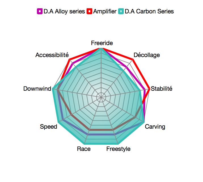 - Polyvalence, Freeride / Freerace / Carving : Aile avant et stabilisateur gamme bullet & shark
